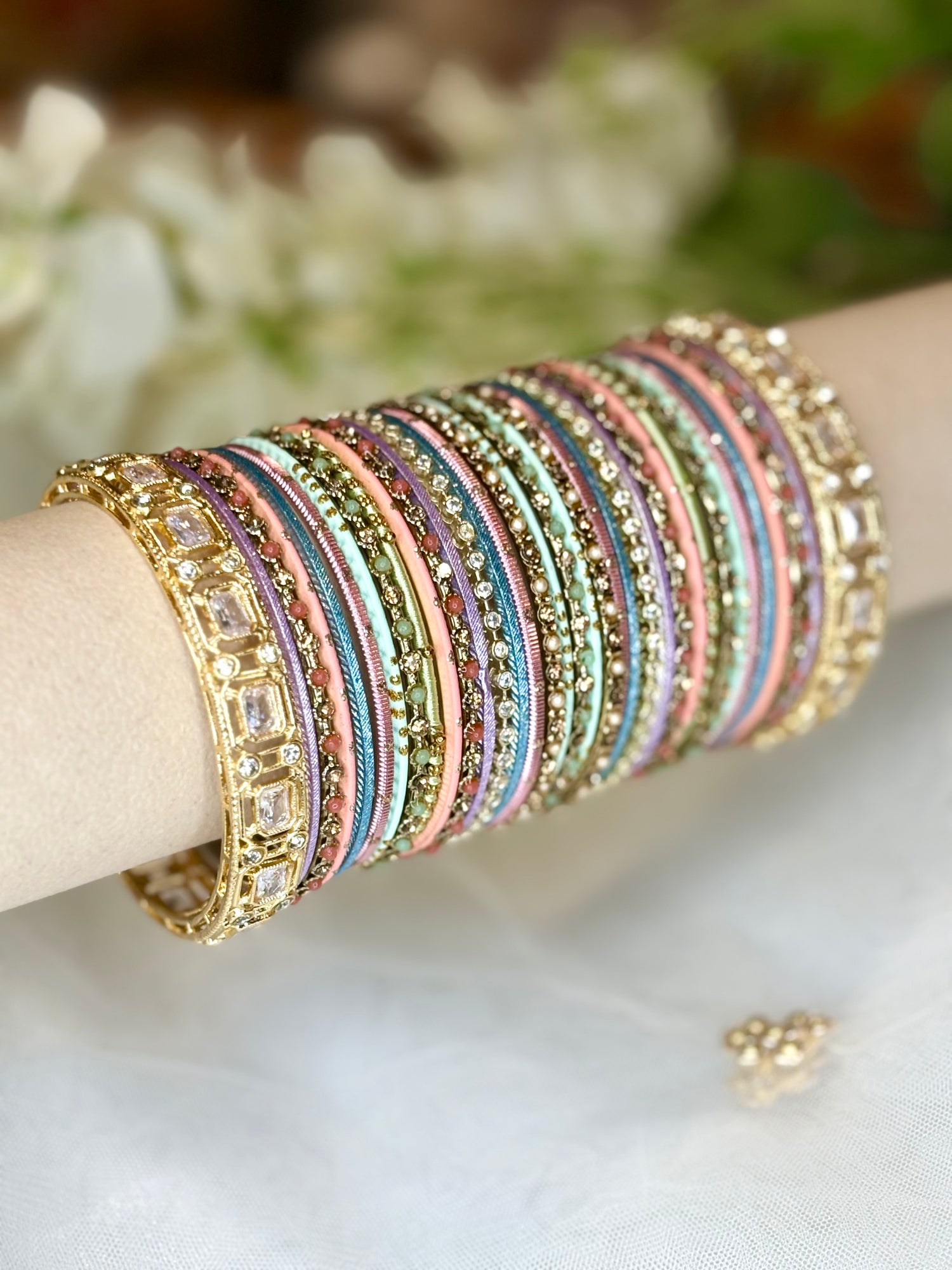 Our non-bridal bangle sets are custom designed to add color, sparkle and style to any outfit.