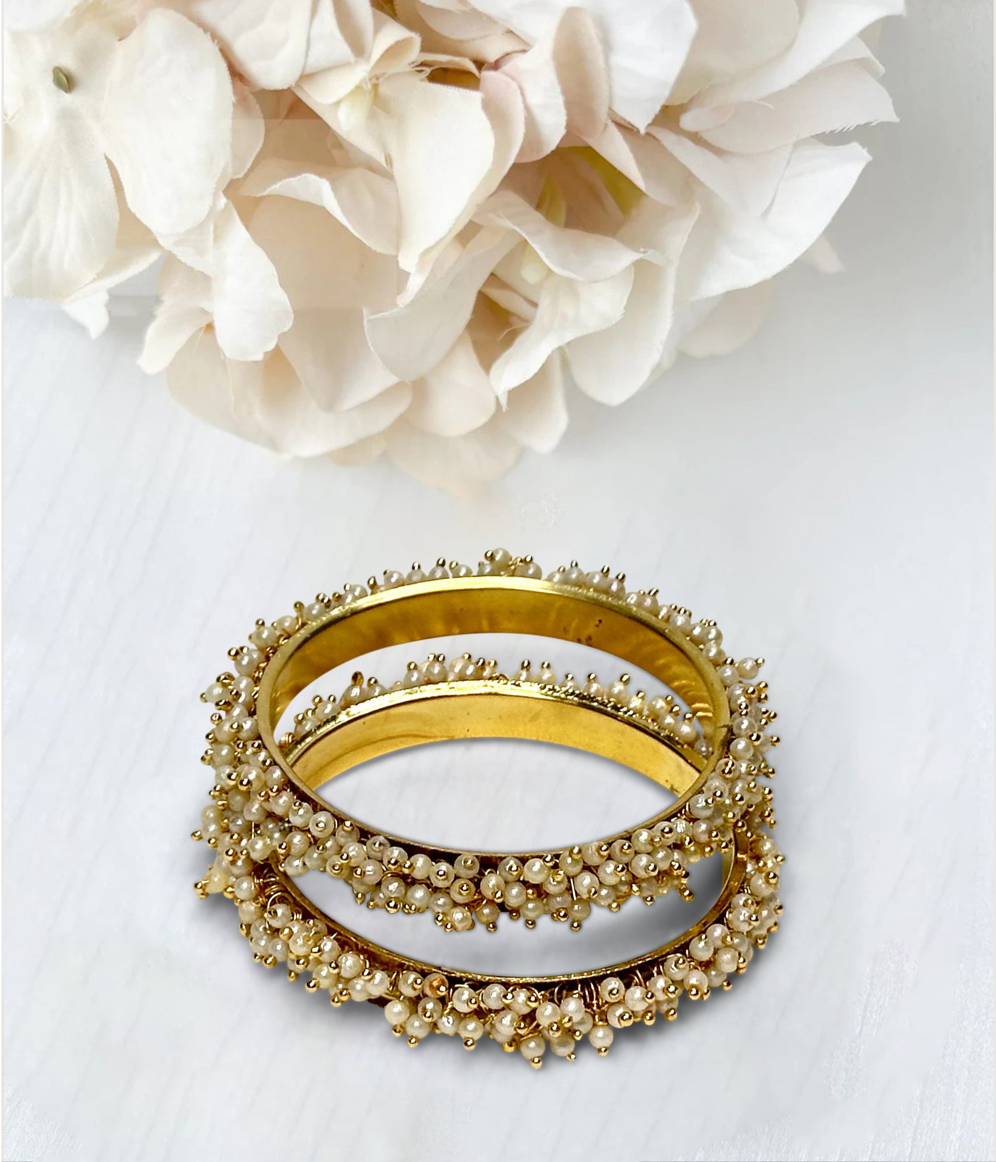 Elegant, timeless pearl cluster bangles. Perfect to wear alone or in a bangle set. Comes as a pair.