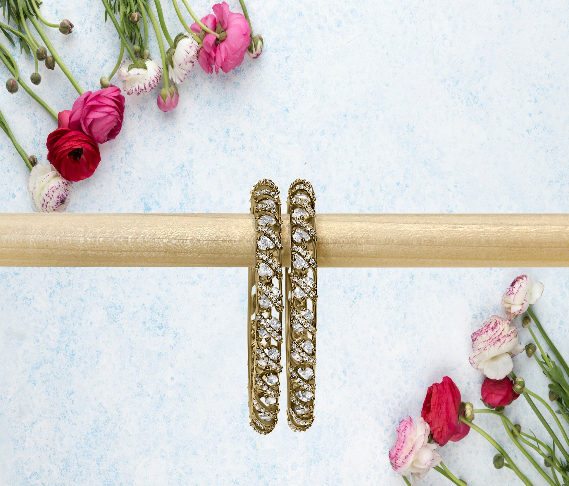 Antique finish with american diamond white stone within a stunning setting. These bangles can be worn alone or with a bangle set