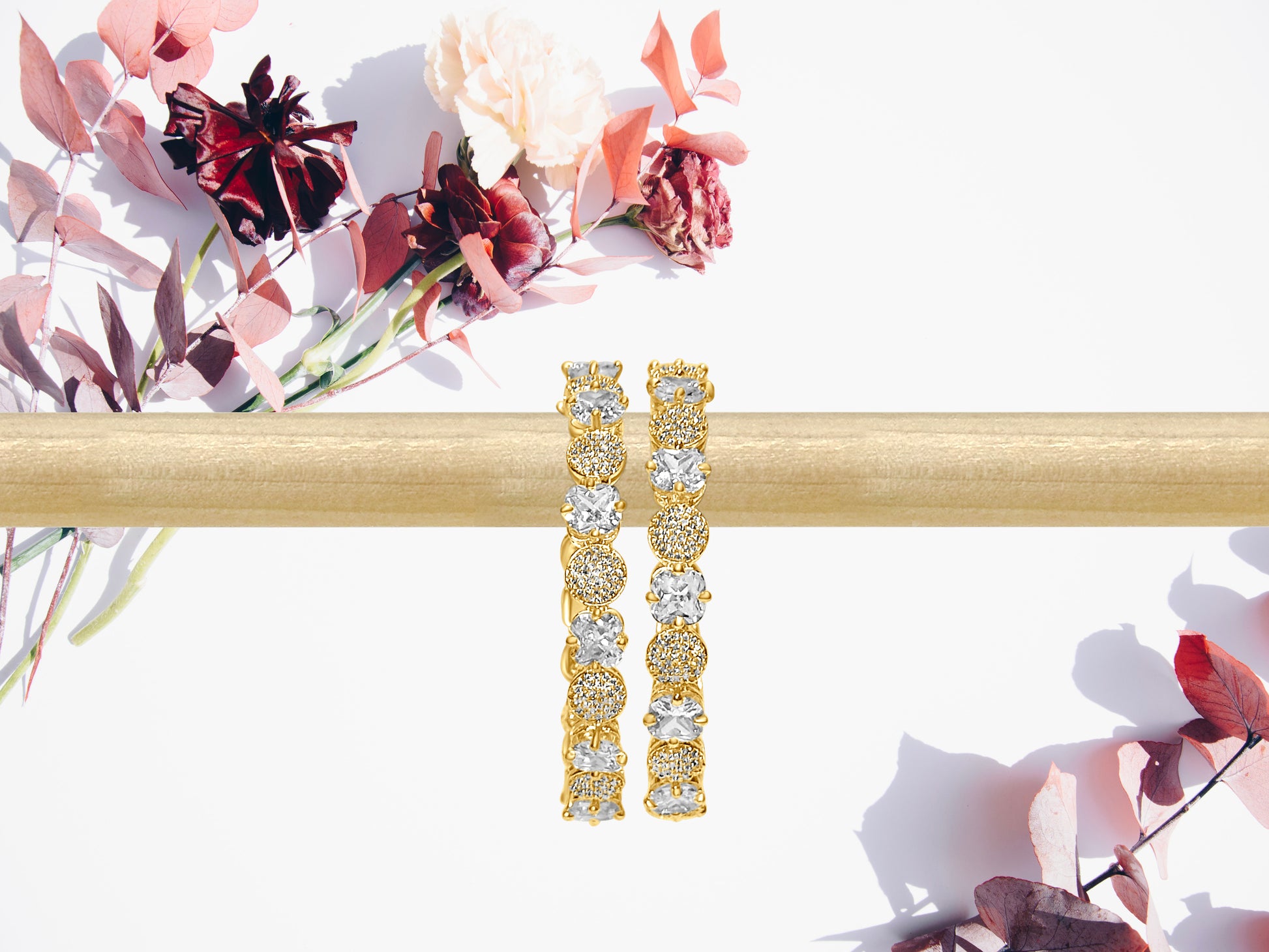 Stunning american diamond bangles with flowers. Can be worn alone or with a custom bangle set. These beautiful bangles come as a pair.
